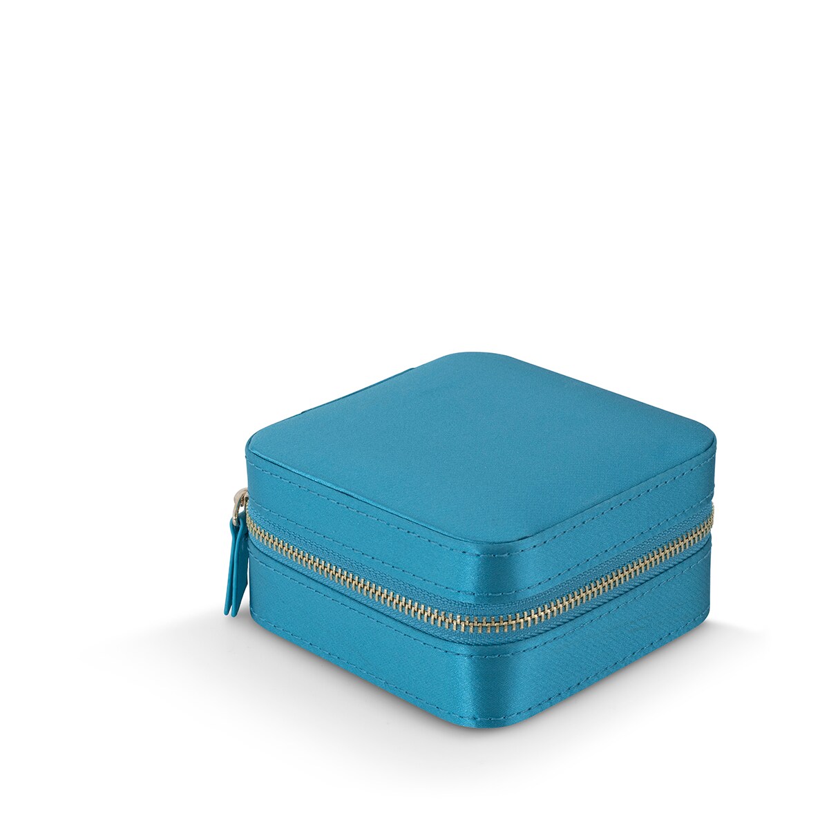 Smyckeskrin: Designat av Charlotte Lynggaard, är det turkosa smyckeskrinet tillverkat av rent siden/silke. Invändigt är ytorna uppdelade och vadderade för att hålla dina smycken säkra och organiserade. Det mäter L10,5 x B10 x H6 cm och har en säker dragkedjeförslutning.