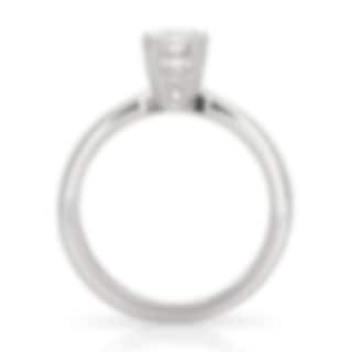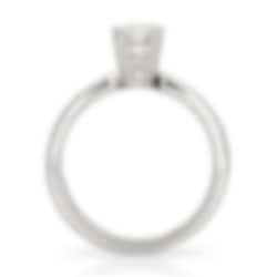 En nätt, elegant enstensring med fyra stycken dubbla klor som håller denna stora briljantslipade diamanten, samt två mindre diamanterna som klär två av sidorna av fattningen.