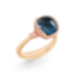 Ring Lotus i rödguld med roséguldsblad och en cabochonslipad London Blue Topas.