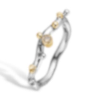 Få det bästa av två världar med Grace Single Polished, en elegant ring som kombinerar det råa uttrycket av silver med den raffinerade gnistan av guld och diamanter. Denna ring är designad för den sofistikerade kvinnan som uppskattar tidlös elegans med en modern twist.