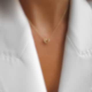 Ett kort hjärthalsband med en twist design i massiv 18 karat återvunnet guld. Det lilla hjärtat rör sig fritt genom öglan, vilket ger smycket en vacker rörelse och lekfullhet. Kedjan är justerbar i tre olika längder så att du kan bära halsbandet i din egen stil.