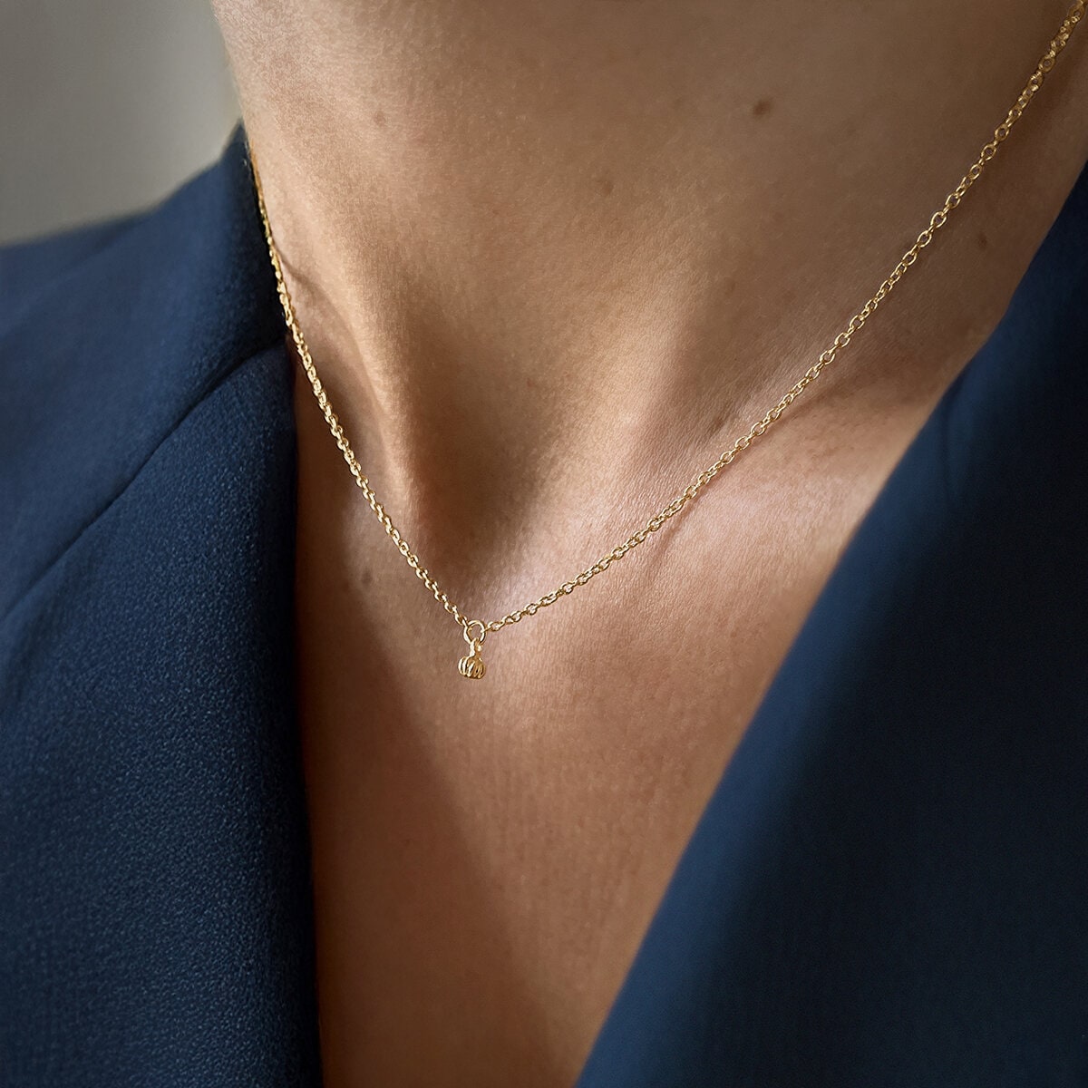 Ett kort nätt guldhalsband med ett litet polerat hänge i form av en blomknopp. Stilren, elegant och feminin smyckesdesign. Skapat i rent 18k äkta guld rakt igenom.
