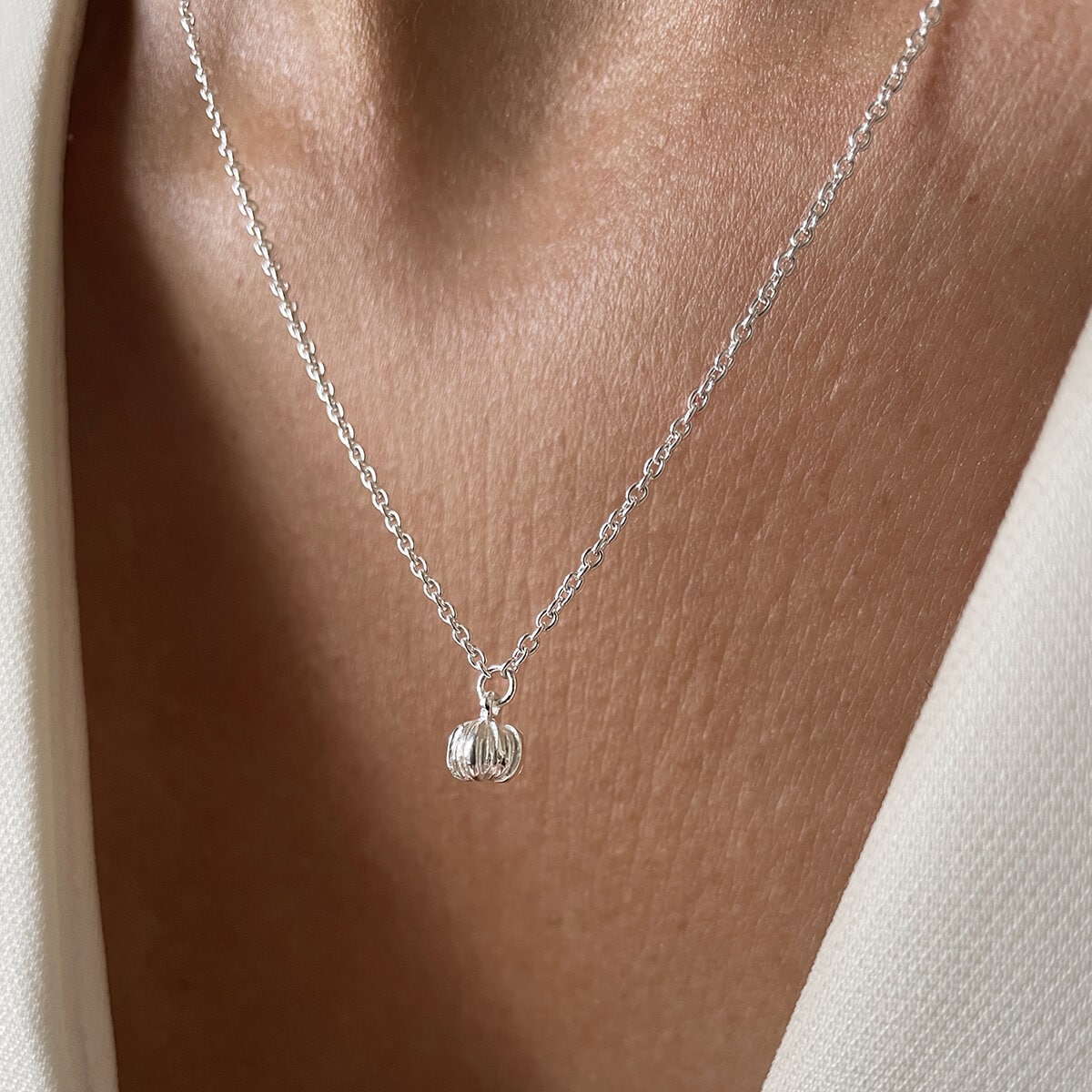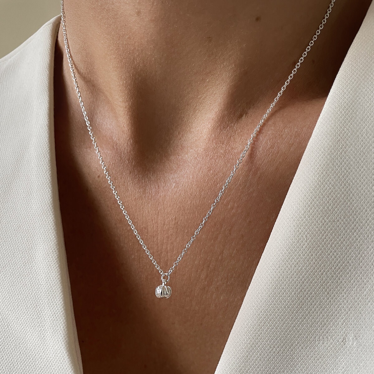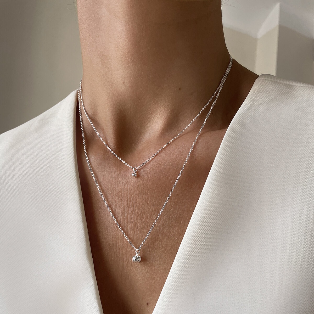 Ett kort silverhalsband med ett hänge i form av en blomknopp i polerat silver. Stilren, elegant och feminin smyckesdesign.