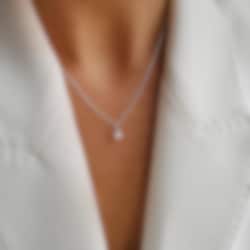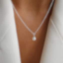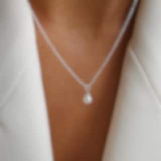 Ett kort silverhalsband på tunn kedja med en skimrande vit sötvattenspärla. Smycket har tre justerbara längder, pärlan kan ligga vacker vid halsgropen eller längre beroende på bärarens val av stil. Pärlhalsbandet är för evigt klassisk, tidlös och elegant.