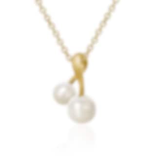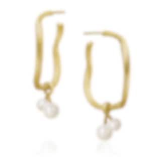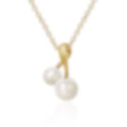 Vega hängsmycket består av två sötvattenspärlor som är sammanfogade med ett slingat band. Det organiskt formade smycket i guld 18 K har den matta yta med fina, handfilade linjer som kännetecknar Vega kollektionen.