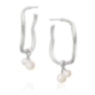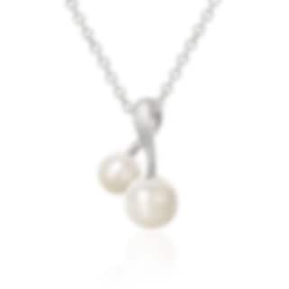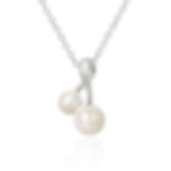 Vega hängsmycket består av två sötvattenspärlor som är sammanfogade med ett slingat band. Det organiskt formade smycket i silver har den matta yta med fina, handfilade linjer som kännetecknar Vega kollektionen.