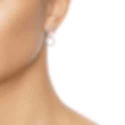 Örhänge med två tunna ringar i återvunnet sterlingsilver som är sammanlänkade av en liten ring i 18k guld.