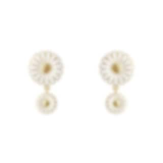 Två vackra tusenskönor i olika storlekar får dessa örhängen att blomstra. Örhängena, som är handmålade med vit emalj och förgyllda med 18 karat gult guld, är en elegant uppdatering av det klassiska Georg Jensen-motivet. Setet är inspirerat av en brosch med tusenskönor från 1940-talet som skänktes till H.M. Drottning Margrethe II.