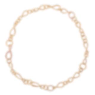 Detta Love-halsband, designat av Charlotte Lynggaard, är tillverkat i 18 karats gult och roséguld. Halsbandet är 45 cm långt och har individuella länkar i varierande storlekar. Guldsmedsmästare har handsatinborstat guldytorna. Det är en del av Love Collection.
