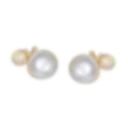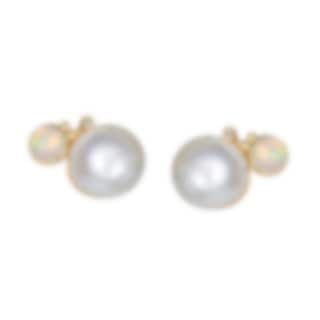 BoHo örhängen i guld med vita Opaler och Sötvattenpärlor samt 2st Diamanter.