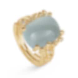 BoHo Ring i guld med en Akvamarin och 5st Diamanter.