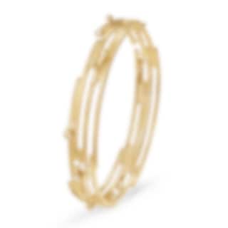 BoHo-armring i 18K gult guld med tre diamanter, designad av Charlotte Lynggaard. Den är handgjord av mästerguldsmeder och har en omkrets på 15–16 cm. Handgjord med matt hamrad yta och polerad insida.