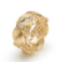 Den flätade ringen large består av tre band i 18 karats guld sammanflätade i en oändlig bana. Varje kurva är noggrant utformad och skapar totalt ett balanserat mönster som mjukt slingrar sig runt fingret. De flätade designerna utstrålar en nordisk essens och en tidlös känsla och uttrycker evigheten.