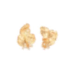Designed by Charlotte Lynggaard, these Wild Rose stud earrings are crafted from 18 karat yellow gold and feature 10 diamonds totalling 0.10 ct. TW VS. Master goldsmiths carve and hammer the gold by hand and polish the ridges to bring out the delicacy of each floral wonder. Each earring has a small eye at the back for attaching changeable pendants or drops.
