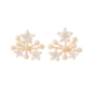 These Shooting Stars stud earrings, designed by Charlotte Lynggaard, are handcrafted from 18 karat yellow gold and 50 diamonds totalling 0.46 ct. TW VS. Each earring features three stars surrounded by seven specks of stardust, adding depth and volume to the design. Each star has a slightly convex, hand-polished back and comprises six brilliant-cut diamonds, raised from the surface to allow light through the facets. The design was introduced in 2024 as an addition to The Shooting Stars Collection.