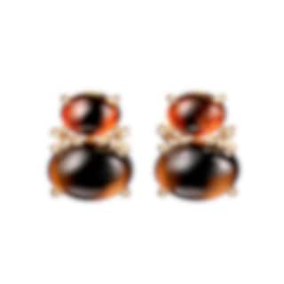 Dessa BoHo-stiftörhängen, designade av Charlotte Lynggaard, är tillverkade i 18 karat gult guld. Varje örhänge är smyckat med två cabochonslipade rökkvartser, två cabochonslipade gula turmaliner, samt två briljantslipade diamanter med en total vikt på 0,005ct.