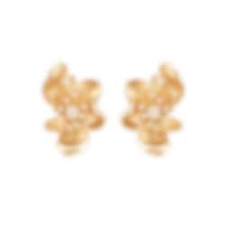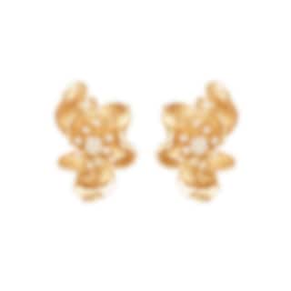 Små, blommiga örhängen i 18 karats gult guld med 30 diamanter. Guldsmeder har format och hamrat ytan för hand, med polerade detaljer, handgjorda av Ole Lynggaard.