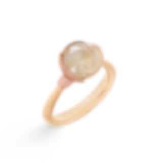 Ring Lotus i rödguld med roséguldsblad och cabochonslipad rutilkvarts.