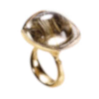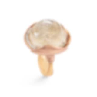 Ring Lotus i rödguld med roséguldsblad och cabochonslipad rutilkvarts.