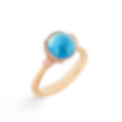 Ring Lotus i rödguld med roséguldsbald och cabochonslipad Sky Blue Topas.