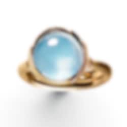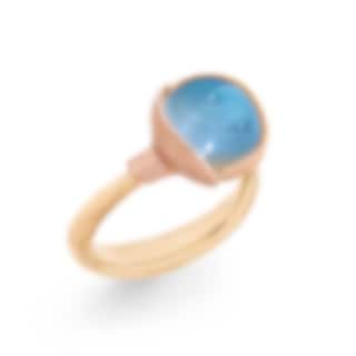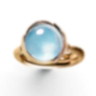 Ring Lotus i rödguld med roséguldsblad och en cabochonslipad Sky Blue Topas.