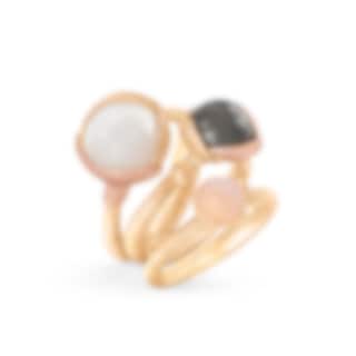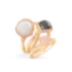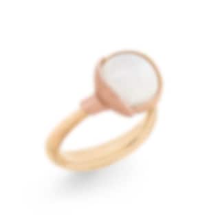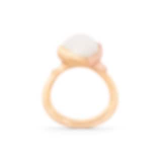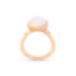 Ring Lotus i rödguld med roséguldsblad och en cabochonslipad vit månsten. Matcha gärna ihop med andra lotusringar