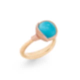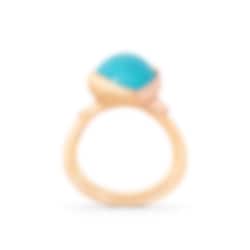 Ring Lotus i rödguld med roséguldsblad och en cabochonslipad turkos.