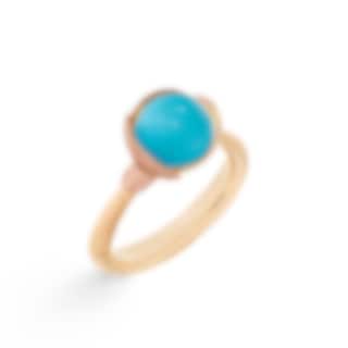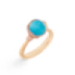 Ring Lotus i rödguld med roséguldsblad och en cabochonslipad turkos