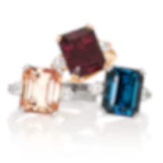 Elegant juvelring med en bländande ädelsten som svävar över ditt finger i en nätt guldskena. Gnistrande briljanter på sidorna förhöjer färgstenens lyster och gör Duette Juvelring till en exklusiv och personlig cocktailring för livets höjdpunkter.