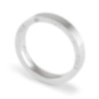 En vit, briljantslipad diamant, 0,01ct, är diskret nedsänkt på denna vitguldsrings ena högkant, omgiven av den utstansade gravyren ”A ROCK FOR MY ROCK”.